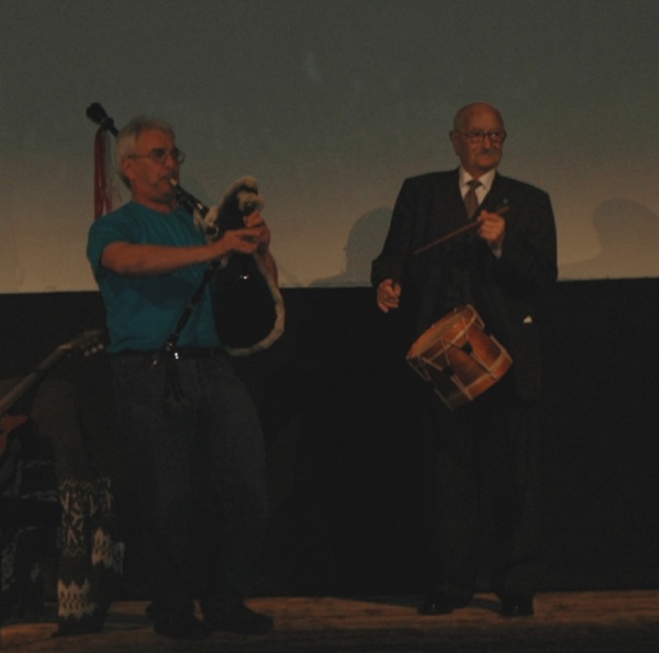 Máis tarde veu a parte musical coa actuación da Quenlla e incluso unha pequena demostración do homenaxeado, que se animou a zumbarlle ao tambor demostrando que aínda consegue converter en son o vertixinoso ritmo ao que a sangue azul e branca leva 95 anos zumbando polas súas veas. Despois proxectouse o libro-documental Lembranzas e reflexións de Avelino Pousa Antelo, dirixido por Xan Leira. Este documento audiovisual apoiado por un soporte escrito fai un percorrido pola vida do mestre do millo, na liña doutros traballos do mesmo director adicados a históricos galeguistas como Ánxel Casal, Daniel Castelao ou Alexandre Bóveda.