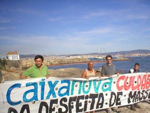 Así, o sector de baixura amosou visibelmente o seu apoio á reivindicación. Entre as embarcacións que se sumaron á acción atopábase a do concelleiro de Urbanismo de Cangas, Mariano Abalo, segundo confirmou Tiago Pérez, voceiro do Foro Social de Cangas. As pancartas e faixas presentes na concentración apuntaban a Caixanova como culpábel da desfeita natural.