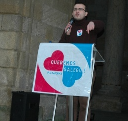 Convocados pola plataforma Queremos Galego, concentráronse diante do Pazo de Raxoi onde se agardaba que este mércores se celebrase o Consello da Xunta, tal e como o executivo liderado por Alberto Núñez Feijoo vén facendo desde o inicio desta lexislatura. O cambio desta reunión ás instalacións da Xunta en San Caetano foi xustamente un dos reproches realizados polo presidente da Mesa pola Normalización Lingüística, Carlos Callón, durante a súa breve intervención no Obradoiro. Callón censurou a "política galegófoba" do actual Goberno e denunciou o ataque "contra a nosa lingua no ensino".