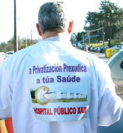 Por un hospital público na súa totalidade. Esa é a reivindicación do persoal sanitario do Complexo Hospitalario Universitario de Vigo (Chuvi), que este mércores participou dunha folga de 24 horas no sector. Segundo a Xunta de Persoal, o seguimento foi do 75%, unha porcentaxe que a Consellaría de Sanidade reduce até o 22%.