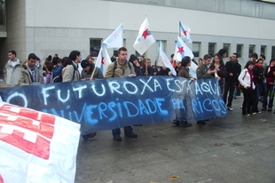 Foi alí -relata-, antes sequera de que se dese por finalizada a lectura dun manifesto a prol dunha universidade pública e allea á influencia de empresas e multinacionais, que os axentes sacaron as súas porras extensíbeis e "comezaron a mallar nos compañeiros". Tamén contra os que estaban encadeados de xeito simbólico. Tamén contra un cámara de TeleLugo que gravaba os sucesos. Os policías implicados declararon pola súa banda que foran agredidos cando tentaron cortar as cadeas.