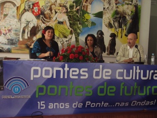De seguido, o músico e produtor Segundo Grandío relatou como se realizou un dos proxectos estrela da asociación: o cd-dvd Meniños Cantores, editado polo selo Pai Música no ano 2005 e no que participaron 17 escolas galegas e portuguesas. Este traballo foi realizado como apoio á Candidatura de Patrimonio Inmaterial promovida pola asociación e presentada no ano 2005 diante da UNESCO e supuxo un fito neste tipo de proxectos. De paso, aproveitouse para presentar o proxecto literario musical “Cores do Atlántico” da cantante brasileira Socorro Lira, que, acompañada de Uxía Senlle explicou como se xestou e preparou a iniciativa, agradecendo o patrocinio de Ponte…nas Ondas!. Como clausura, un concerto de Socorro Lira (Brasil), Joao Afonso (Portugal) e Uxía Senlle (Galiza) na Casa da Cultura, nun día sinalado, o 25 de Abril no que se conmemoraba a Revolución dos Cravos en Portugal.