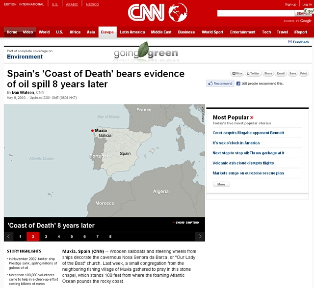 O futuro é incerto e nun intento por anticipar as posíbeis consecuencias, a canle de televisión CNN desprazouse até a Costa da Morte, concretamente a Muxía, para constatar de primeira man como un territorio afronta unha catástrofe ecolóxica e económica deste tipo. Como é a Galiza post-Prestige máis de oito anos despois do afundimento do petroleiro ante as nosas costas.