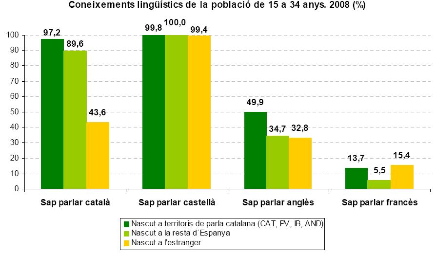 Os datos reflicten que catro de cada dez parellas novas castelánfalantes empregan cos seus fillos o catalán tanto ou máis ca o castelán. Os autores explican que este feito marca un cambio xeracional, xa que con anterioridade a porcentaxe era dun caso por cada dez.