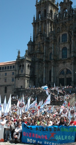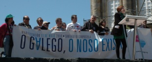 "Que lles molesta? Que lles proe? Que o rañen! Imos defender Galiza e a nosa lingua!". Subliñando o espírito reivindicativo da festa que a prol do galego xuntou milleiros de persoas na capital do país, remataba o presidente da Mesa pola Normalización Lingüística, Carlos Callón, a quenda de intervencións este luns na Praza do Obradoiro. Un espazo ateigado que deu mostra palpábel de que a forza mobilizadora non esmorece e choiva ou faga sol responde en favor do idioma unha e outra vez.