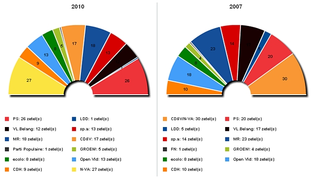 Mais a Nova Alianza Flamenga, que nas anteriores eleccións de 2007 conseguira 19 representantes, esa revisión para chegar a acordos cos socialistas francófonos -gañadores en Valonia con 26 escanos- de cara á formación dunha coalición de goberno.
