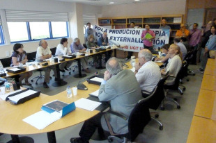 "Os traballadores e traballadoras da TVG queremos seguir facendo produción propia interna, tal e como xa viñamos realizando nestes 25 anos". Así reza o documento que vén de entregar o Comité de Empresa aos representantes do Consello de Administración da CRTVG en demanda do cese da externalización da produción da televisión pública galega.