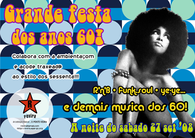 O sábado 27 de Setembro pola noite terá lugar a Grande Festa dos Anos 60 na Revira R'n'B, ye-ye, funk-soul, e muita mais música da época sonará durante a noite. Colabora com a ambientaçom e acode traxead@ ao estilo da década!!!
