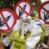Ao berro de "Se non tedes fillos, será culpa do millo!", membros da Plataforma Galega Antitransxénicos denunciaron que a iniciativa é insuficiente.