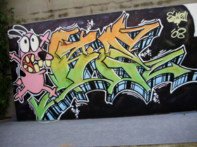 Cor e imaxinación combínanse coas referencias tecnolóxicas para armar un mural artístico que decora ás portas da ciberxuntanza. Agasallo grafitteiro do que deixamos imaxe aquí.