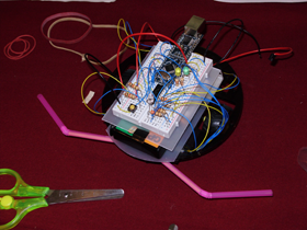 Do revolto de enredos que viron na bolsa anterior, cun chisco de paciencia e sabios consellos, sae este becho que ven aquí por baixo, cun aquel de robótico abesouro. Observen o detalle de cornamenta con palla. Non está aínda bautizado. Pasen e intenten facer a súa propia mascota-robot.