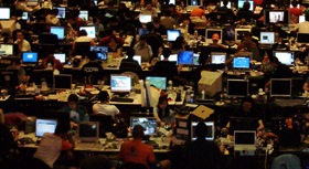 Nas primeiras horas, a mocidade segue concentrada nos seus ordenadores.