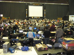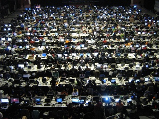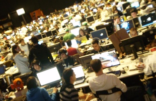 Xa roda a pleno pulmón cibernético a principal romaría do país. Cruzando a media tarde, os últimos en chegar buscaron asento entre o mar de computadores. Máis de 1.800 ciber-romeiros. Estamos todos? Que comece a festa!