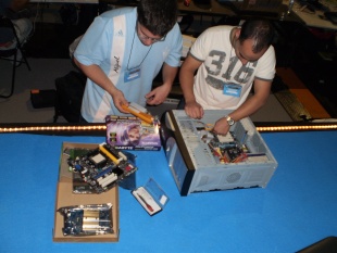 Que non teñen computador a man? Non hai problema. Apáñanse as pezas e búscanse os expertos. Velaquí temos a dous. Miguel e Jose, de Plexus. Un disco duro por aquí, tarxeta gráfica por aló. En tempo récord, máquina á carta.