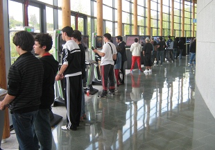 Volven os carriños. A frenética actividade da entrada ao Xuventude Galiza Net 2009 volve protagonizar as primeiras horas desta festa informática que estrea un local máis amplo. Perderase alguén polo camiño? O aumento de prazas tamén fixo que haxa moita xente "virxe" na XGN.